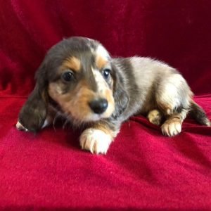 He is an outstanding Dachshund puppy sure to melt your heart with your first glance at him. This fella is sweet & he will surely greet everyone that comes his way with puppy kisses. He enjoys running around playing with the children he is being raised with. This baby is vet checked, vaccinated, wormed and comes with a 1 year genetic health guarantee. Call about him today