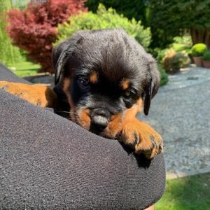 Rottweiler puppies are extremely intelligent ,They are incredibly smart, which makes them highly trainable, and they’re generally very playful, happy dogs. They are usually very protective of their families but they make wonderful and loyal pets. Rottweilers are huge pets, with an average weight of an average of around 100 pounds. fully grown. They are quite active and love to exercise because they were originally bred to be hard-working, protective dogs