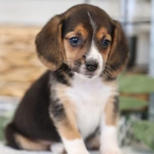 This pocket Beagle puppy will make you fall head over heels in love with her the moment you see her! She is cute as a button and has an amazing personality. This puppy is super happy and is just looking for a family to call her own. She is super social and enjoys playing with the children she is being raised with. This baby is AKC registered, vet checked, vaccinated, wormed and comes with a 1 year genetic health guarantee. Her parents are Twilight (60-70lbs.) & Gurner. Don’t let this baby slip through your fingers! Call today!